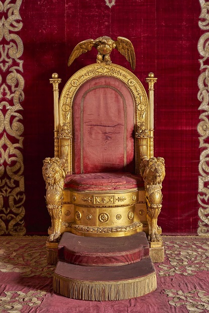 La decisione di dotare la Reggia napoletana di un trono realizzato ex novo è indicativa dell’importanza che la nuova dinastia attribuiva al complesso monumentale e alla città in precedenza capitale del Regno borbonico.
