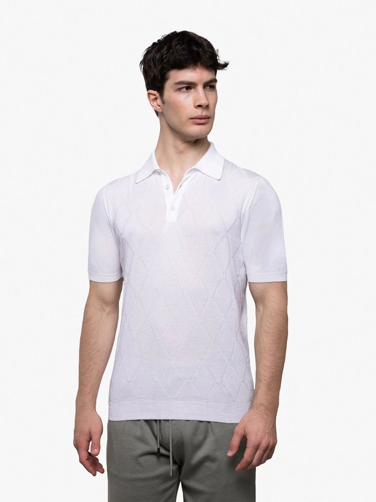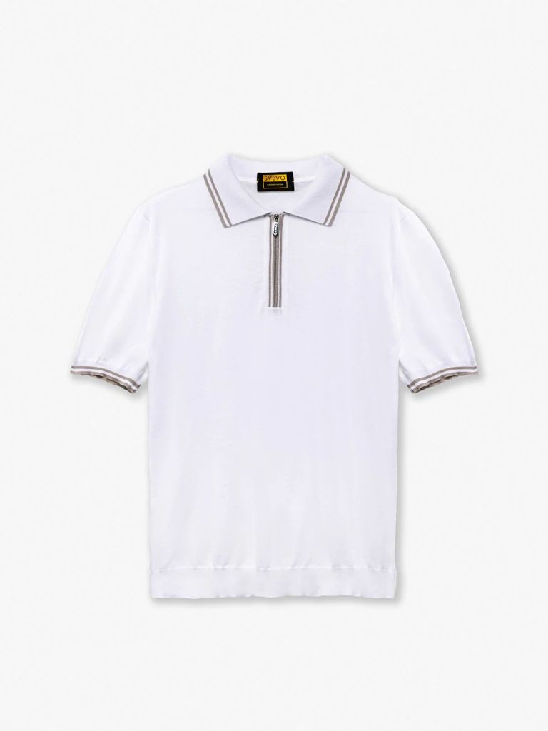 Polo con zip 100% Cotone Supersoft Bianca con profili a contrasto Beige – € 475,00
