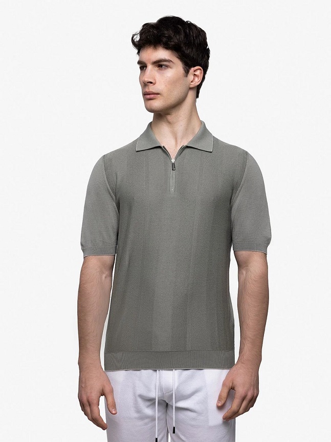 Polo con zip 100% Cotone Supersoft Verde – € 515,00