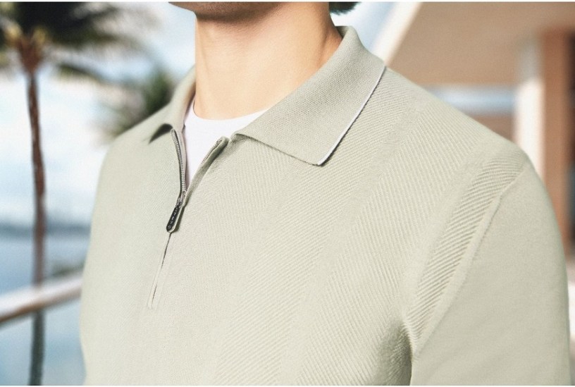 La polo per la Primavera/Estate 2025 riflette questa commistione tra sport e moda con il collo Svevo Open Mind, una soluzione senza bottoni chiusa da una zip. Realizzata in cotone Supersoft, noto per la sua morbidezza e resistenza eccezionale.