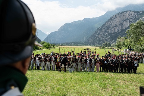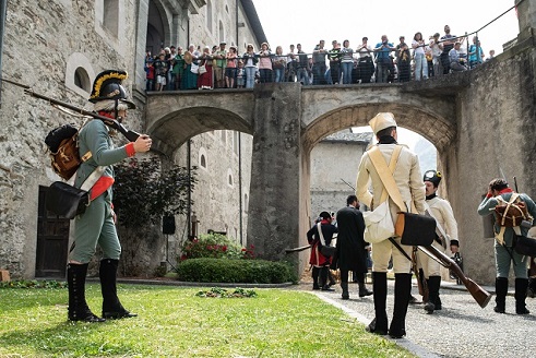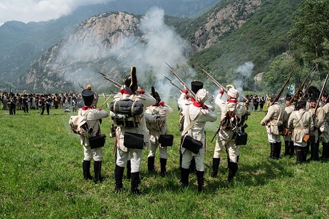 14.30 Dalla piazza del borgo di Bard: schieramento e inizio battaglia finale con rievocazione degli scontri tra truppe francesi dell’Armée de Réserve in arrivo dal Borgo e gli austro- piemontesi in difesa del Forte