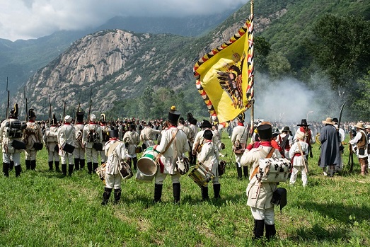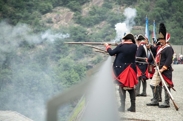 16.30 Inizio battaglia campale con rievocazione degli scontri tra truppe francesi dell’Armée de Réserve in arrivo dal Gran San Bernardo e gli austro-piemontesi in difesa del Forte