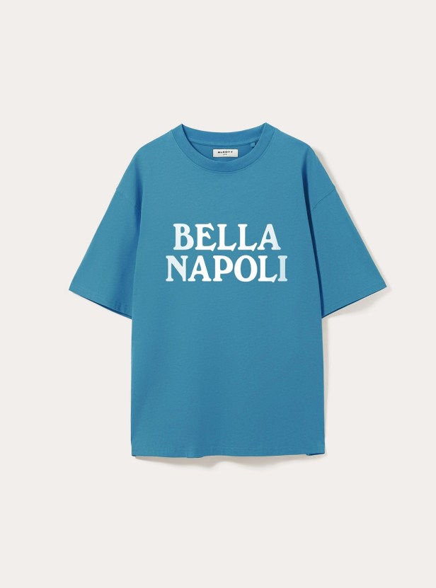 La maglietta, con la scritta “BELLA NAPOLI” stampata sul petto, è un tributo alla bellezza e al carisma della città, oggi al centro della scena sportiva internazionale. Disponibile da subito nel flagship store di Via Toledo, sarà affiancata da un’installazione in vetrina interamente dedicata a questo storico momento.