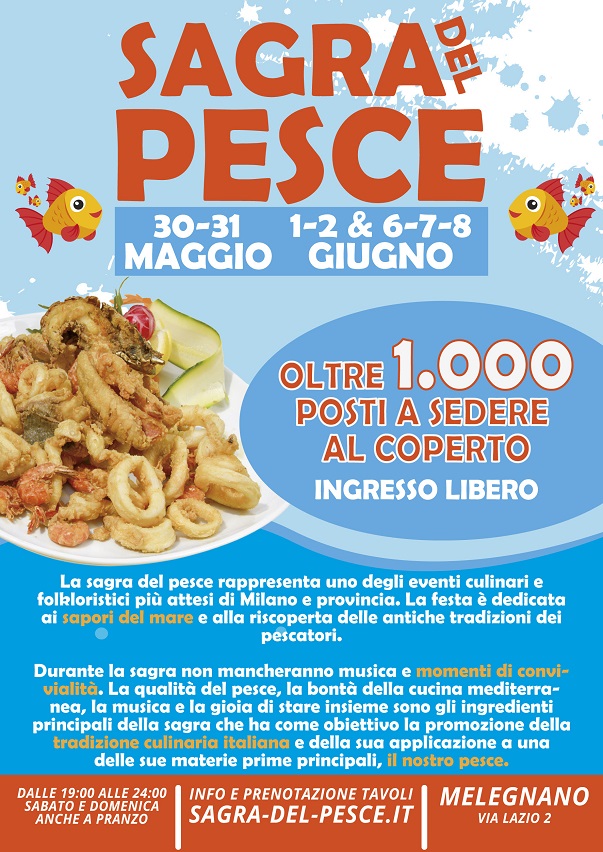 È ormai alle porte uno degli eventi gastronomici più attesi della stagione più soleggiata: la Sagra del Pesce di Melegnano (Milano), che si terrà nei giorni 30 e 31 maggio, 1, 2, 6, 7 e 8 giugno in via Lazio 2, sotto una grande tensostruttura coperta da oltre 1.000 posti a sedere. Un’occasione unica per assaporare specialità di pesce fresco preparate al momento dall’affiatata brigata della cucina. Il menù spazia dai classici fritti misti alle linguine allo scoglio fino alle ricette più ricercate, il tutto accompagnato da vini selezionati e birre artigianali.