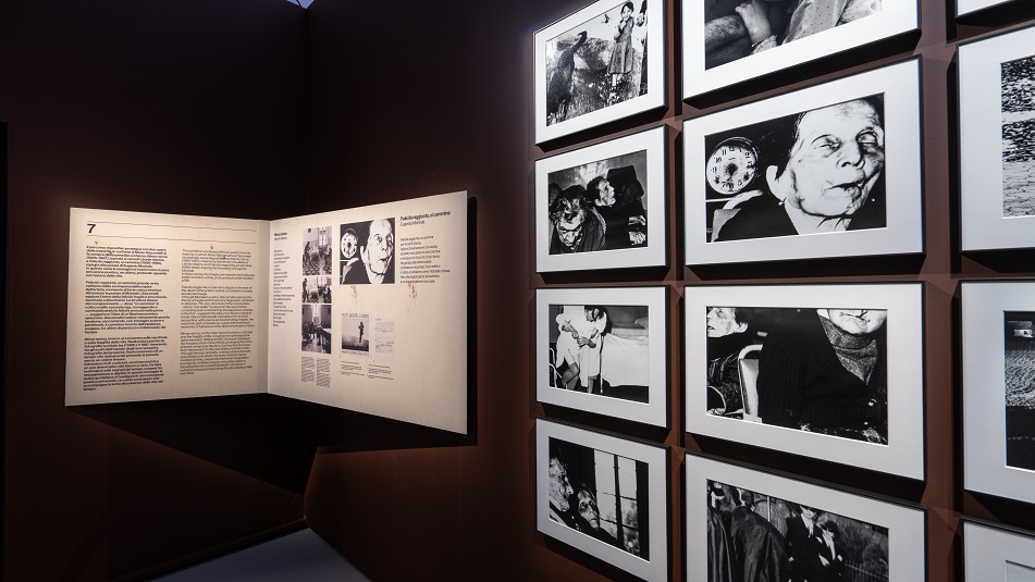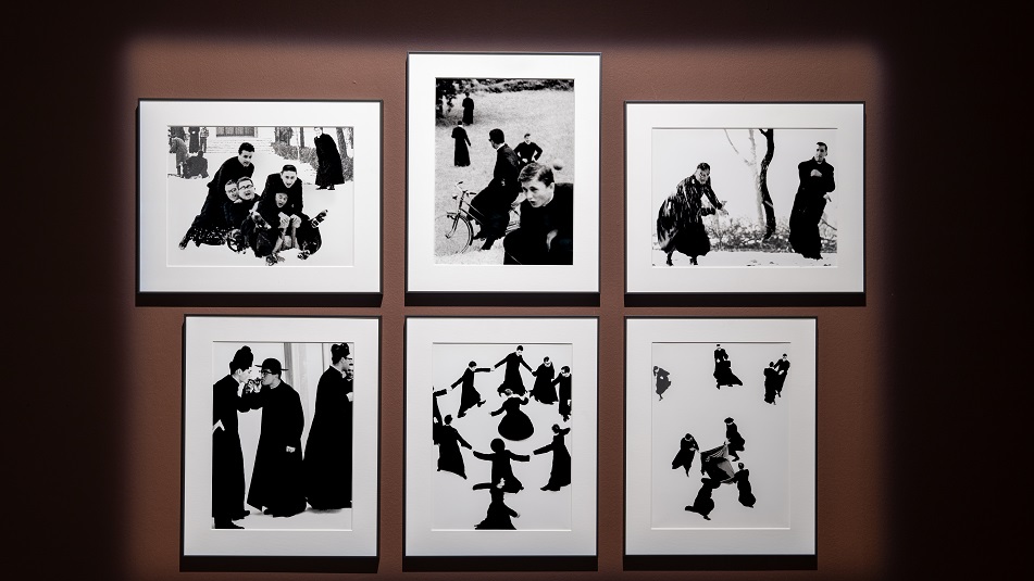 Cuore pulsante della mostra è una sala dedicata alla straordinaria serie Io non ho mani che mi accarezzino il volto (1961/63), ispirata alla poesia di Padre David Maria Turoldo, il cui titolo diventa emblema visivo e concettuale di un’opera intensa e senza tempo. Le immagini dei giovani seminaristi, sospese tra innocenza e inquietudine, movimento e contemplazione, trasformano il quotidiano in una danza tra laico e spirituale.