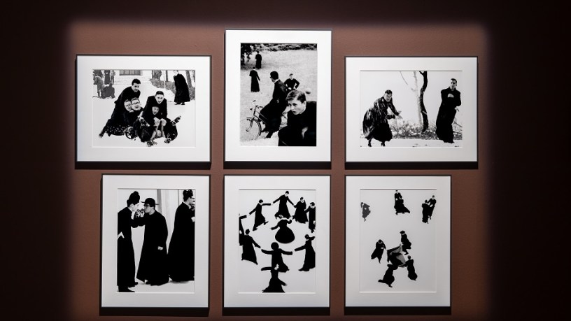 Cuore pulsante della mostra è una sala dedicata alla straordinaria serie Io non ho mani che mi accarezzino il volto (1961/63), ispirata alla poesia di Padre David Maria Turoldo, il cui titolo diventa emblema visivo e concettuale di un’opera intensa e senza tempo. Le immagini dei giovani seminaristi, sospese tra innocenza e inquietudine, movimento e contemplazione, trasformano il quotidiano in una danza tra laico e spirituale.