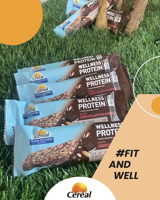 Céréal, marchio specializzato in alimentazione salutare e, in particolare, in prodotti “free from”, amplia la sua linea Senza Zuccheri. Oltre la grande varietà di merendine e biscotti, sia semplici che farciti, continua ad allargare il segmento barrette. Dopo una prima estensione dello scorso anno, con il lancio delle prime barrette al cioccolato senza zuccheri aggiunti, disponibili in una confezione con tre monoporzioni, quest’anno Céréal Senza Zuccheri lancia la Barretta WELLNESS PROTEIN gusto CIOCCOLATO MANDORLA.