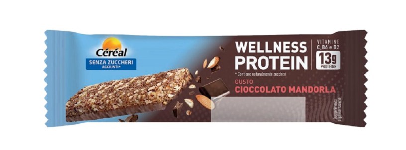 Céréal, marchio specializzato in alimentazione salutare e, in particolare, in prodotti “free from”, amplia la sua linea Senza Zuccheri. Oltre la grande varietà di merendine e biscotti, sia semplici che farciti, continua ad allargare il segmento barrette. Dopo una prima estensione dello scorso anno, con il lancio delle prime barrette al cioccolato senza zuccheri aggiunti, disponibili in una confezione con tre monoporzioni, quest’anno Céréal Senza Zuccheri lancia la Barretta WELLNESS PROTEIN gusto CIOCCOLATO MANDORLA.