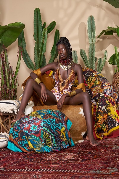 Protagonisti assoluti sono i pattern che rileggono i motivi delle pitture rupestri mutandoli in un racconto sensoriale da indossare, dove il passato diventa spunto per uno stile senza tempo. Il racconto di questa magia è affidato a bikini e a interi sui quali esplodono tecniche di stampa che replicano l’effetto del dipinto a mano tipico dell’arte rupestre valorizzando una volta di più la maestria artigianale del brand. Il savoir faire stilistico raggiunge il suo culmine nelle lavorazioni sartoriali che arricchiscono i modelli con dettagli inediti: charms con sassolini e pietre dall’effetto naturale; frange di ispirazione berbera realizzate con nappe e treccine sui bikini a triangolo e sugli interi cut out. Anche la beach couture è fortemente evocativa e si esprime con libertà nel mini dress dalle linee ampie così come nel maxi abito a balze dinamizzato da tagli inaspettati.