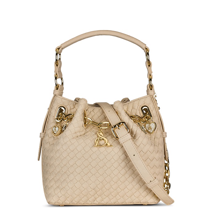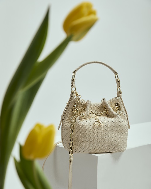 Non solo una linea di borse ma una dichiarazione di femminilità radiosa, capace di celebrare il gusto per il dettaglio e l’eleganza quotidiana che da sempre caratterizza il brand. Protagonista della collezione è un raffinato quanto iconico motivo intrecciato, simbolo di artigianalità senza tempo, che si declina in due diverse varianti di modelli, una tote bag e una bucket bag.