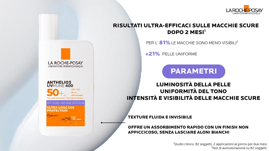 La Roche-Posay presenta ANTHELIOS UVMUNE 400 FLUIDO ANTI-MACCHIE SPF50+ e ANTHELIOS UVAIR SPF50+: due novità viso per una protezione solare completa e quotidiana.