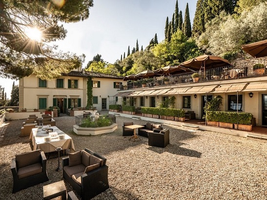 FH55 Hotel Villa Fiesole - È un boutique hotel 4* di 32 camere sulle colline toscane a due passi da Firenze, che accoglie i suoi ospiti nell’atmosfera di una residenza storica con un romantico sguardo sulla città. L’edificio principale originariamente una serra utilizzata dai monaci del vicino monastero, oggi ospita la reception, le camere panoramiche e il ristorante. Nella sala colazione dalle ampie finestre la ricca scelta di prodotti freschi dolci e salati serviti a buffet è accompagnata dalla meravigliosa vista sulla città. Passando dal giardino in stile italiano, si arriva alla villa ottocentesca, che offre camere ampie ed eleganti per piacevoli momenti di privacy e relax. Le camere si caratterizzano per peculiarità differenti: dimensioni degli ambienti, vista panoramica su Firenze, terrazzo o patio privato, soffitti affrescati, pavimenti in parquet o cotto. I soffitti affrescati, l’atmosfera sospesa nel tempo e la posizione tranquilla, regalano l’emozione tutta fiorentina di un soggiorno in una dimora signorile, al tempo stesso intima e familiare. Il Ristorante “Serrae Villa Fiesole”, insignito dalla Guida Michelin dal 2025 della stella e la cui proposta gastronomica è firmata dallo chef Antonello Sardi, è un ambiente raccolto con una splendida terrazza a disposizione degli ospiti. Con l’arrivo della bella stagione, si trasforma poi in un delizioso ristorante e bar all’aria aperta con vista sulla città. Ė aperto da martedì a sabato (da settembre a giugno) e da mercoledì a lunedì (a luglio e agosto) a pranzo dalle 12.30 alle 14.00 e a cena dalle 19.30 alle 22.00. Immersa nel verde si trova anche la piccola ma gradevole piscina, accessibile da maggio a ottobre. L’hotel è pet friendly, accoglie gli animali domestici di piccola e media taglia senza alcun costo aggiuntivo e e dispone inoltre di un parcheggio privato.