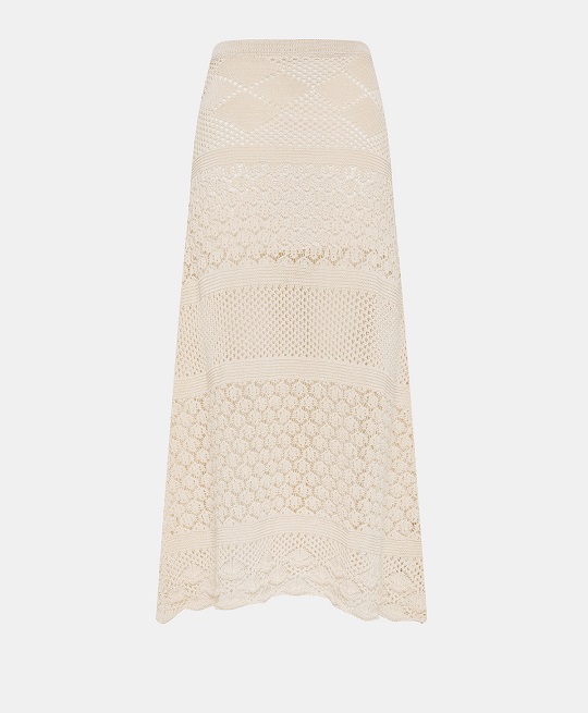 Richiami all’artigianato mediterraneo emergono nei dettagli all’uncinetto, evocando l’atmosfera vivace dei mercatini sul mare e le emozioni dei pomeriggi d’estate.
