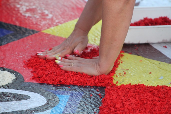Tuttavia, il momento nel quale la festa e la socializzazione raggiungono il culmine è la notte tra venerdì 20 e sabato 21 giugno, allorché il centralissimo Corso Italia, principale via della città, si trasforma in un operoso e fantasmagorico cantiere dal quale, come per miracolo, nel volgere di poche ore prenderà vita una fiabesca scenografia composta da ventuno artistici tappeti floreali a tema religioso, un’insolita galleria d’arte a cielo aperto che resterà in esposizione fino a domenica.