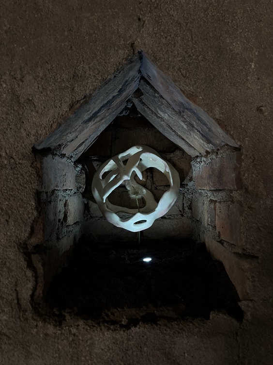 Negli spazi della Cantina del Ricetto di Magnano, le ceramiche di Martina Cioffi giocano a nascondersi o ad apparire di sorpresa, mettendo in discussione la percezione che si ha dello spazio. Come in una caccia al tesoro il visitatore incontra le sculture dell’artista, distribuite nello spazio a comporre paesaggi inventati, eppure possibili, abitati da creature che con la loro posizione guidano lo sguardo dello spettatore.