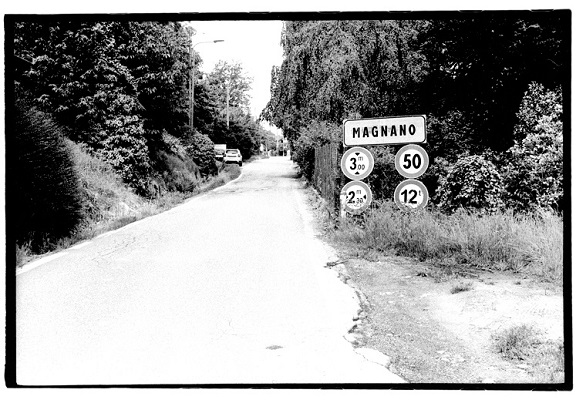 Nel corso di tre mesi, rinkaku è tornato più volte a Magnano per studiarne il paesaggio e gli scorci, con l’intenzione non di restituirne un ritratto documentaristico, completo e veritiero. Le immagini dell’artista, che volutamente mantengono imperfezioni ed errori, rifuggono infatti a una piena leggibilità: le architetture, le strade, il cielo sono mangiati dal bianco accecante del sole e dal nero assoluto dell’ombra. Le fotografie di rinkaku creano smarrimento, provocando una sensazione di disorientamento pur trovandosi davanti a luoghi che si pensava di conoscere a fondo.
