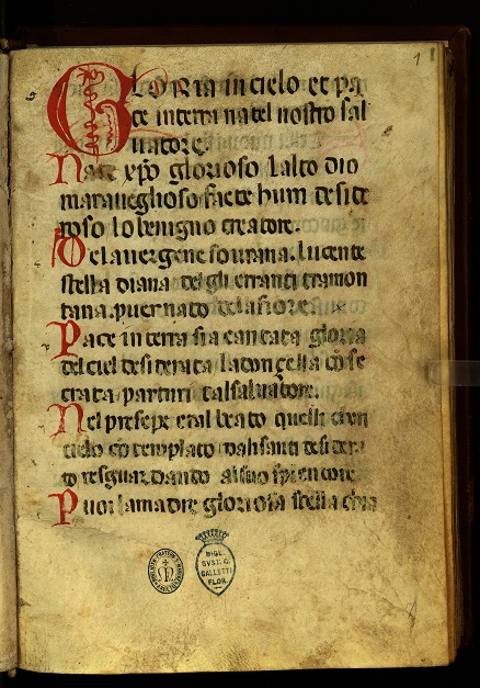 Il Laudario di Cortona, fulcro della mostra, fu rinvenuto fortuitamente nel 1874 in un sottoscala della Biblioteca e testimonia come le confraternite già nella seconda metà del Duecento si dedicassero sistematicamente al canto di laude in occasione di festività religiose e processioni. All’epoca il cantar laude costituiva una pratica di carattere devozionale molto diffusa soprattutto a livello popolare ma anche un modo per sentirsi parte della comunità civica in un momento storico caratterizzato da violenti contrasti tra le diverse fazioni cittadine.