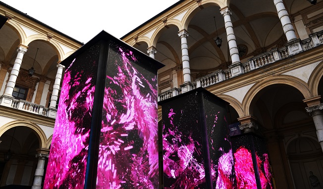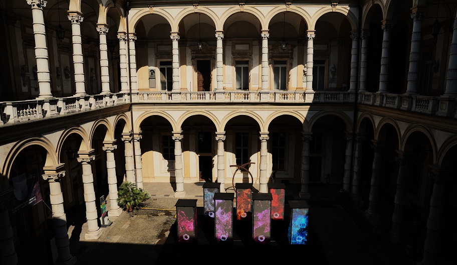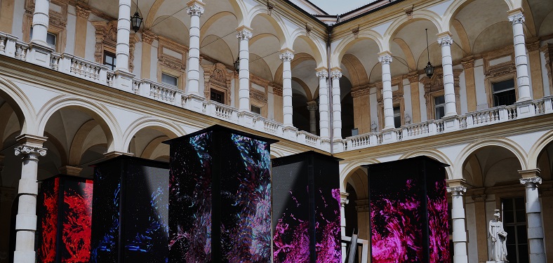 “Un organismo visivo e sensibile – dice Carlo Riccobono di auroraMeccanica – un archivio emozionale che prende vita nello spazio pubblico dell’Università attraverso la materia della luce e del suono. Le torri sono flussi di memoria processati come dati viventi: frammenti delle voci, dei pensieri e delle azioni di undici donne che hanno attraversato e trasformato la storia del sapere. Non raccontano da sole: attendono il gesto del pubblico, che diventa scintilla narrativa, attivatore di memoria. In questo spazio sospeso tra passato e presente, le voci delle donne si ricompongono come costellazioni mobili, frammenti di storie che si ricompattano solo quando qualcuno si avvicina, guarda, tocca. In un’epoca in cui la memoria rischia di dissolversi nell’eccesso di informazioni, Doctrix propone una nuova visione della statuaria pubblica: in dialogo con gli austeri busti marmorei della Galleria degli uomini illustri, si pone come una scultura digitale viva che respira, ascolta e si riconfigura, in una continua ricerca di un dialogo attivo con i visitatori”.