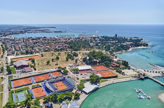Affacciato sulla costa a nord di Umago, lo Stella Maris Resort è il cuore pulsante del torneo. Oltre ai campi da tennis, offre spiagge, un porto turistico, piscine, aree giochi per bambini, ristoranti, negozi e attività sportive per tutte le età: dallo stretching mattutino al beach volley, dalla vela all’equitazione. Umago è raggiungibile in bicicletta o con il trenino turistico che costeggia il mare.