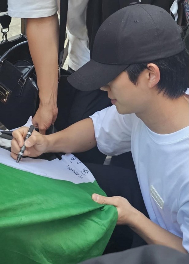 Incontrare una star che si ama profondamente è un’emozione indescrivibile, ma è anche una grande responsabilità. Secondo noi, il comportamento ideale nasce prima di tutto dal rispetto. Rispetto per la persona, prima che per il personaggio. Anche se il cuore batte forte, anche se l’entusiasmo è travolgente, bisogna ricordarsi che dietro ogni celebrità c’è un essere umano, spesso stanco, sotto pressione, che sta lavorando. Essere fan non significa solo ammirare da lontano, ma anche saper proteggere chi amiamo. Significa scegliere la delicatezza, evitare gesti impulsivi, non invadere lo spazio personale, e accettare anche un incontro silenzioso, fatto solo di sguardi e gratitudine. A volte un sorriso sincero vale più di mille parole o di una foto forzata. Nel caso di Jung Hae In, che è una persona estremamente rispettosa e disponibile con le sue Haeiness (le sue fan), ci siamo sentite ancora più spinte ad essere all’altezza di quella gentilezza. Lo abbiamo accolto con entusiasmo, certo, ma sempre con discrezione. In fondo, quando si è fan, questo è il regalo più grande che si possa fare all’artista: farlo sentire al sicuro.