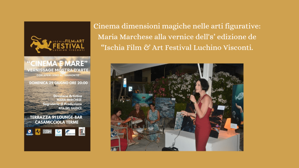 Alla mostra e contest, allestita da Rita Del Giudice, partecipano gli artisti Gruppo di allievi di Art Studio Natali Ferrary, Alessandra Mangano, Alice Fioretto, Alessandra Bovino (Damasca), Carmela Rinaldi, CarmenPuntoArte, Claudia Mazzitelli, Giovanna Secondulfo, Giovanni Incoronato, Laura Ferraro, Grazia Famiglietti, Ali Reza Modjb Shirazi, Yana Nozdracheva, Giovanni Tommasello, Antonio Pugliese, Ylenia Pilato, Eugenio Jaffè, Fiorentina Speciale. La VIII edizione di Ischia Film&Art Festival Luchino Visconti è patrocinata fra gli altri, da Regione Campania e Città Metropolitana di Napoli, ed è organizzata sotto l’egida di Accademia Ischia Arte Luchino Visconti.