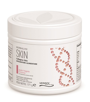 Herbalife SKIN Collagene Skin al gusto di fragola e limone è una nutrizione mirata per la pelle. Oltre ai noti benefici apportati dal collagene, è ricco di vitamine e minerali per contribuire non solo al benessere della pelle, ma anche quello dei capelli e delle unghie[1].