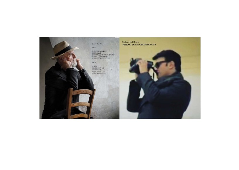 «“Visioni di un crononauta” è un progetto che ha avuto una lunga gestazione e ha una veste molto importante: la copertina è infatti una fotografia specchiante di Michelangelo Pistoletto che in questa sua performance-cameo siede sulla Sedia del Viaggiatore. Quest’ultima compariva sulla copertina dell’album di Claudio Baglioni “Viaggiatore sulla Coda del Tempo” ed è l’unico oggetto che il cantautore ha messo all’asta nella sua carriera. Io riuscii ad aggiudicarmela ad un’asta di Amnesty International nel 2003. Questa sedia è un ponte elevatoio tra il passato, il presente e il futuro» racconta Stefano Del Bravo.