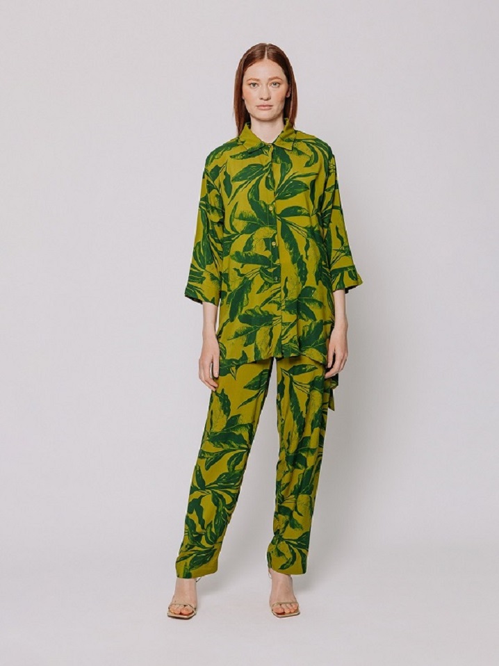 Anche la palette cromatica è carica di energia: tra l’audacia del verde foglia, dell’arancio corallo, del blu foliage si fanno spazio la delicatezza dei toni pastello e la classicità del bianco e nero.