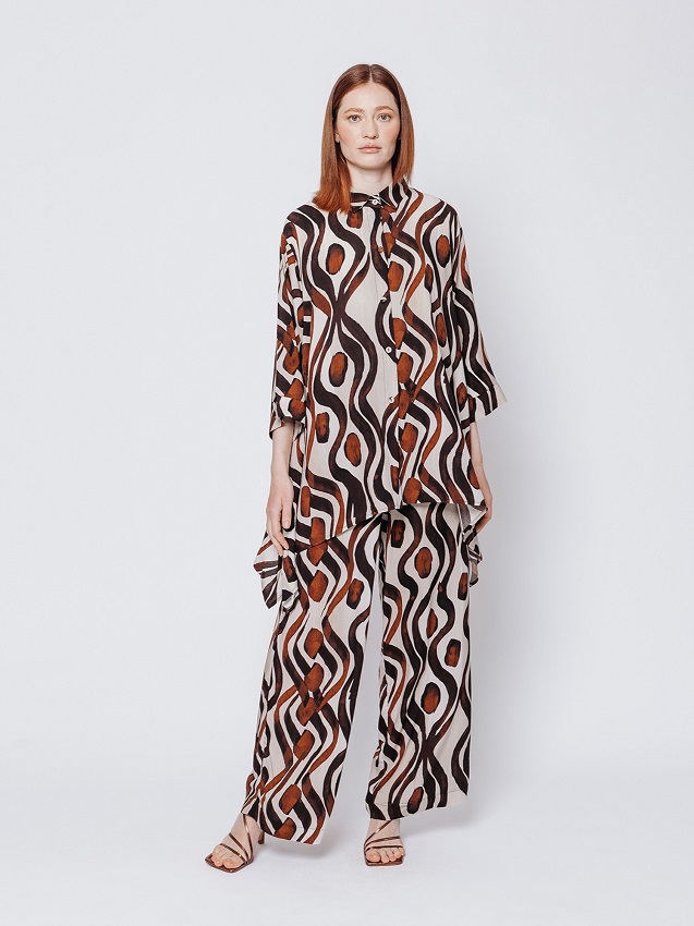 I protagonisti? Motivi floreali astratti, geometrismi grafici e suggestioni etniche che si inseguono sul popeline di viscosa, setoso e naturalmente fresco, complice ideale per accompagnare il ritmo della stagione estiva.