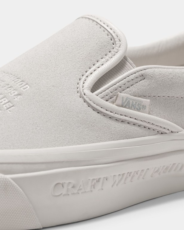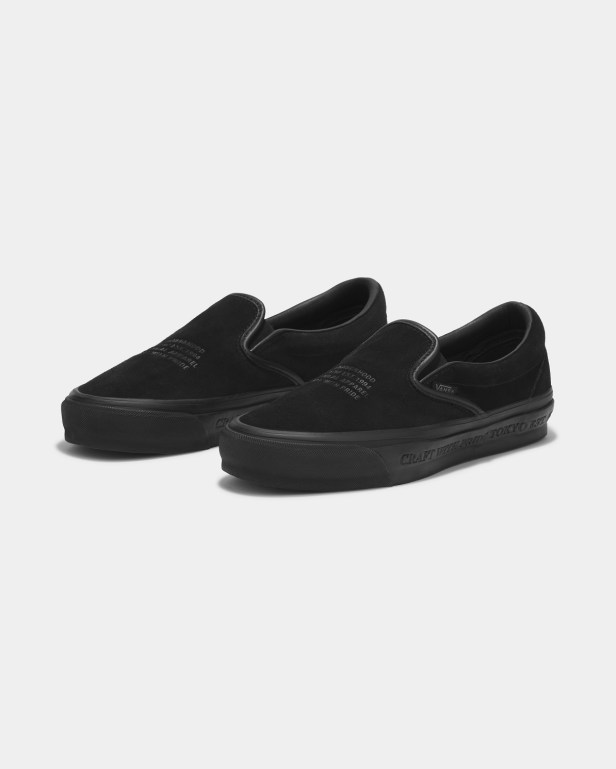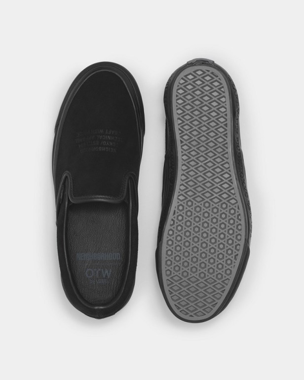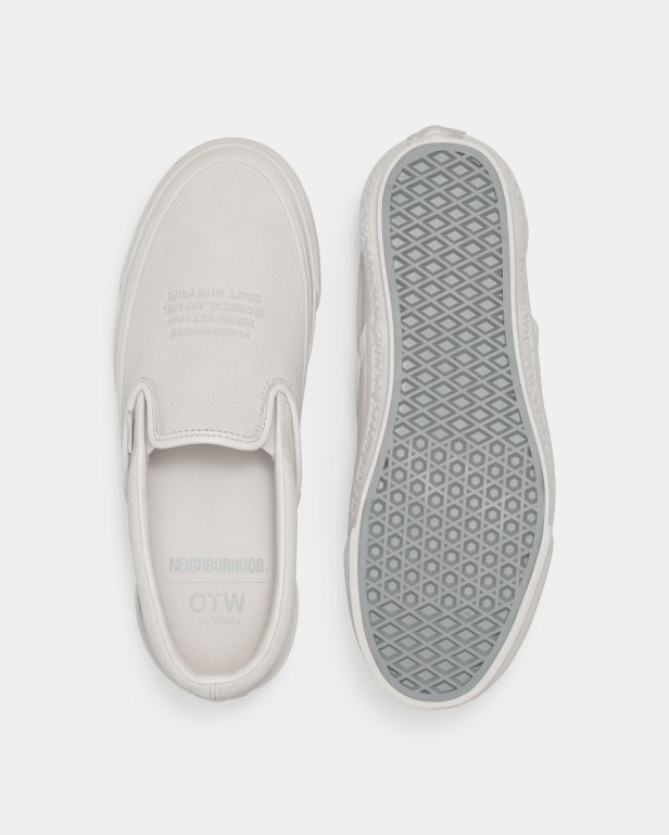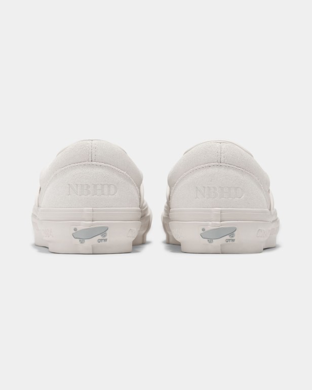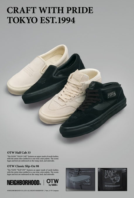 ll tallone del modello Classic Slip On 98 presenta invece il marchio “NBHD” in rilievo, e la scritta “Neighborhood Tokyo Est. 1994 Technical Apparel Craft With Pride” sulla tomaia.