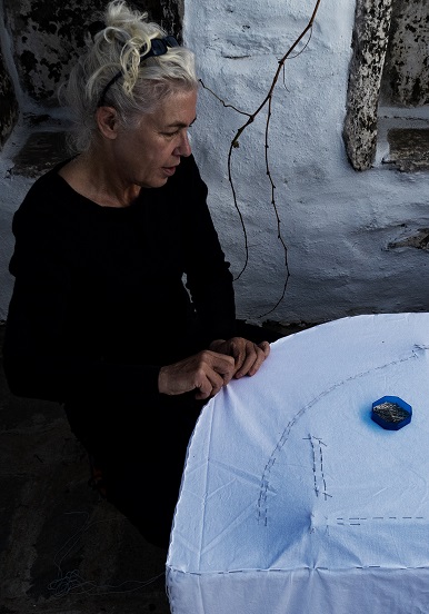 In uno degli ambienti, Giovanni Gaggia presenta un ricamo su coperta, frutto di un processo collettivo avviato a Pergola e ancora in corso. Un’opera sospesa, nata da una domanda ricamata in arabo, che trasforma il gesto della cura in atto di relazione e attesa: Com’è il cielo in Palestina?. Per la prima volta, Gaggia – fondatore di Casa Sponge – espone all’interno dello spazio che ha creato e curato per anni. Una scelta simbolica compiuta in via eccezionale per l’urgenza del tema, che lo porta a farsi testimone attivo di una riflessione collettiva.