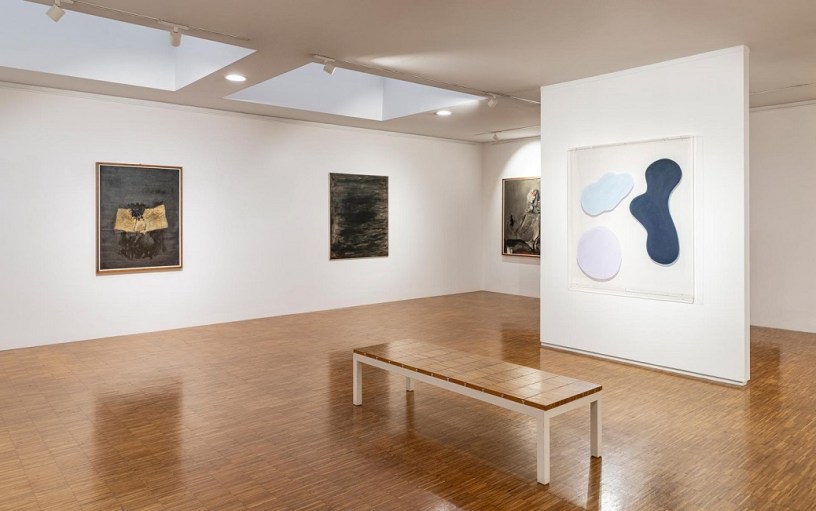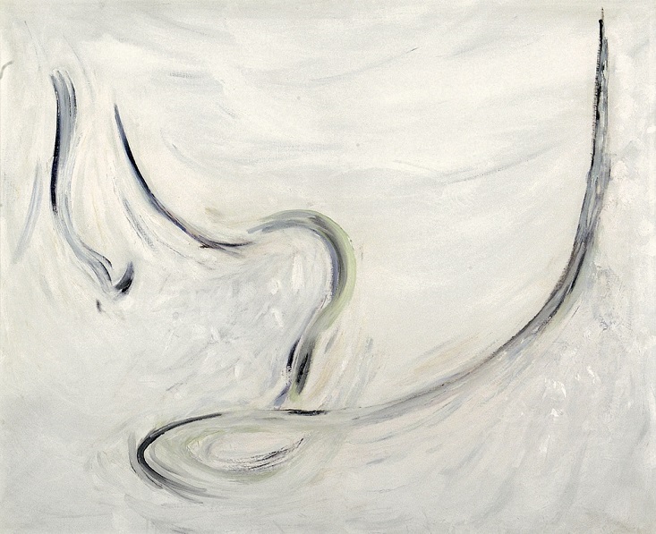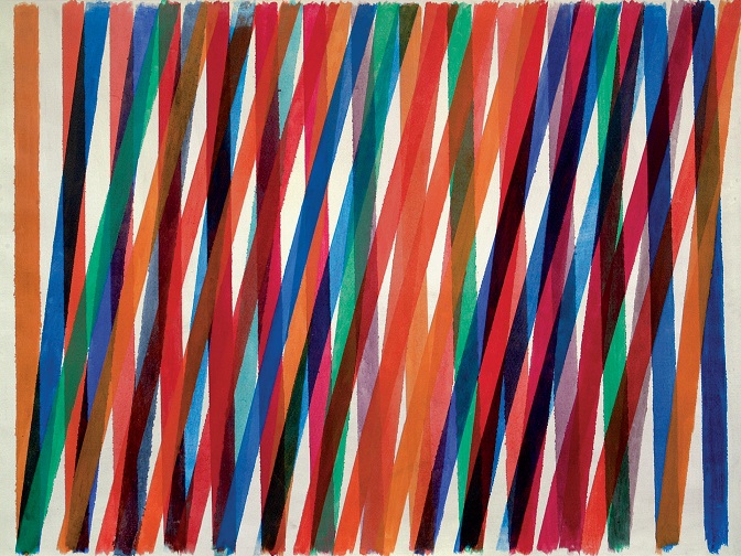 Di Achille Perilli, un altro dei grandi nomi dell’Astrattismo italiano, è esposta l’opera L’Emploi du temps (1959), suddivisa in due ripartizioni da una linea orizzontale ottenuta tramite la scalfitura della tela, ricoperta con un composto materico di pietra pomice, polvere di marmo e gesso. Le due aree sono attraversate da sequenze di grafemi incisi con forza e pregni di forte carica gestuale. Alla fine degli anni Cinquanta, Perilli usava “graffiare” le superfici delle sue tele, ricreando una grafia comprensibile a chiunque, inesistente ma densa di significato, capace di entrare in sintonia con lo spettatore.