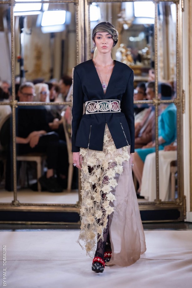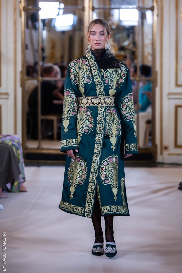 Göwher PIRKULYYEVA-GOUVERNET (Turkmenistan): stilista turkmena formata tra Parigi e San Pietroburgo, unisce il tailoring francese a influenze nomadi per uno stile sofisticato.