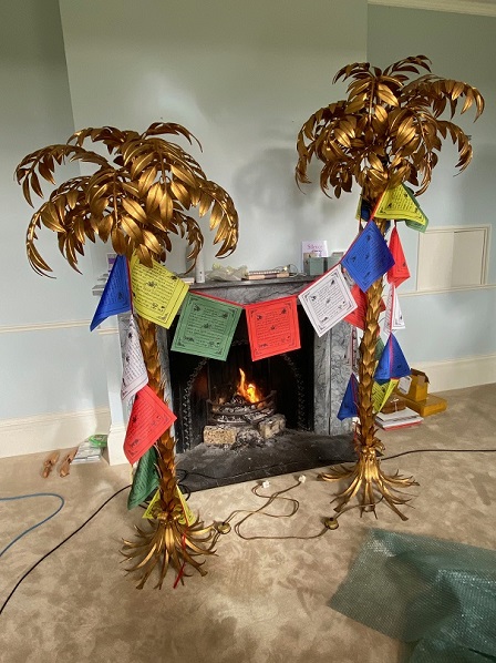 Tra queste: una serie di fotoincisioni dedicate ai cipressi della piana del Sarno, che evocano la dimensione geologica e memoriale del paesaggio vesuviano; un’installazione luminosa ispirata al carro cerimoniale rinvenuto a Civita Giuliana, con il celebre palindromo latino IN GIRUM IMUS NOCTE ET CONSUMIMUR IGNI, “Andiamo in tondo nella notte e siamo consumati dal fuoco” e un gruppo di lampade-scultura in forma di palme dorate, poste nel patio dell’Antiquarium, in dialogo con l’architettura della vicina Villa Regina.