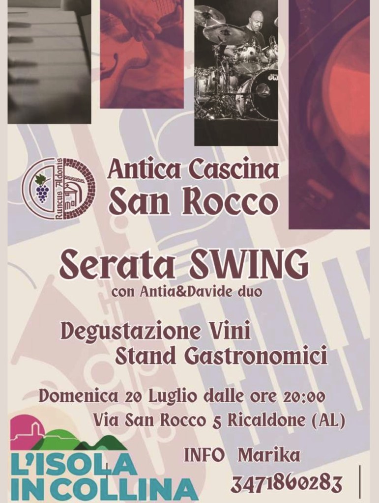 | Domenica 20 luglio | Cascina San Rocco ore 21.30: concerto di “AnitaDavideDuo” Stand gastronomici. ingresso libero |