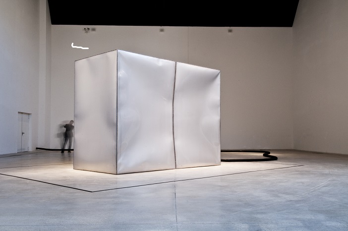 La mostra si apre nel cortile della Villa con la grande installazione Piccolo Animismo, realizzata da Arcangelo Sassolino nel 2011 per Il Museo Macro di Roma ed esposta a Venezia in occasione della 17. Mostra Internazionale di Architettura – La Biennale di Venezia. Una turbina soffia e aspira aria nel grande parallelepipedo composto da lastre di acciaio inossidabile e saldate tra loro. Un movimento ciclico d’immissione e sottrazione d’aria in pressione determina un’evidente alterazione del volume della struttura metallica, fino al raggiungimento della tensione massima, che si manifesta con un forte impatto sonoro, una sorta di tuono indotto artificialmente.