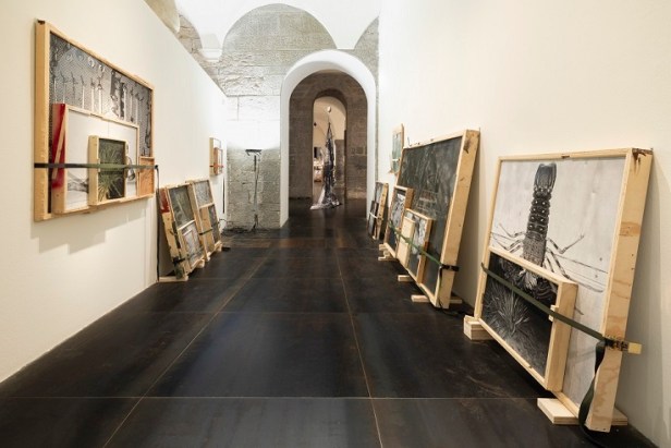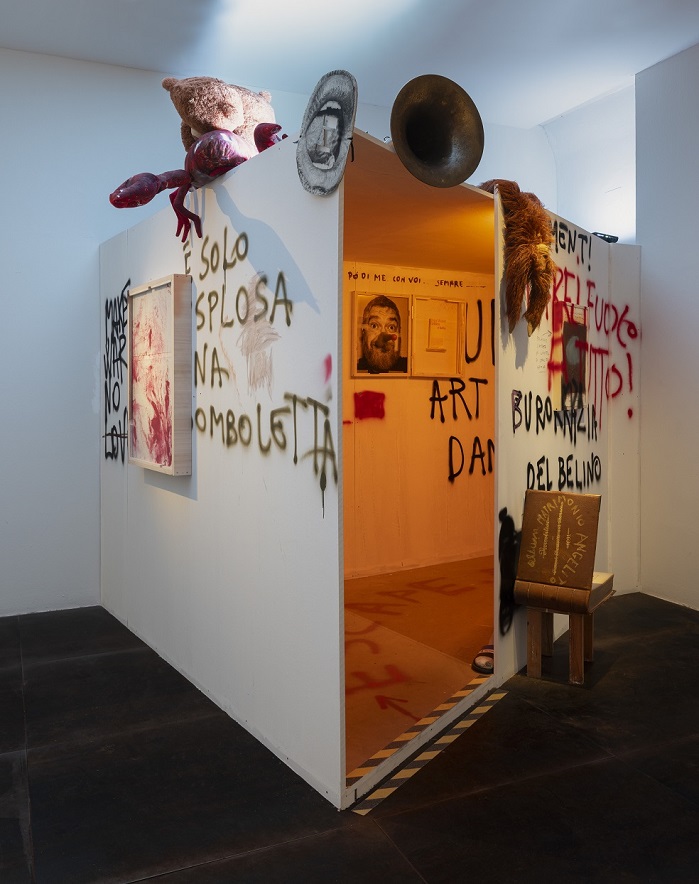 Le stratificazioni costituiscono il fulcro del percorso di mostra, evidenziando la necessità di Benassi di contaminare il proprio linguaggio con quello della scultura e dell’installazione, al punto di fare della stessa impurità (nel duplice senso di ibridazione e oscenità) uno dei soggetti principali. Fotografie allucinate si sovrappongono a quadri pseudo-romantici (a metà tra Turner e un film di Terrence Malick), calchi in gesso, brandelli di muro, pezzi di vetro e molto altro ancora.