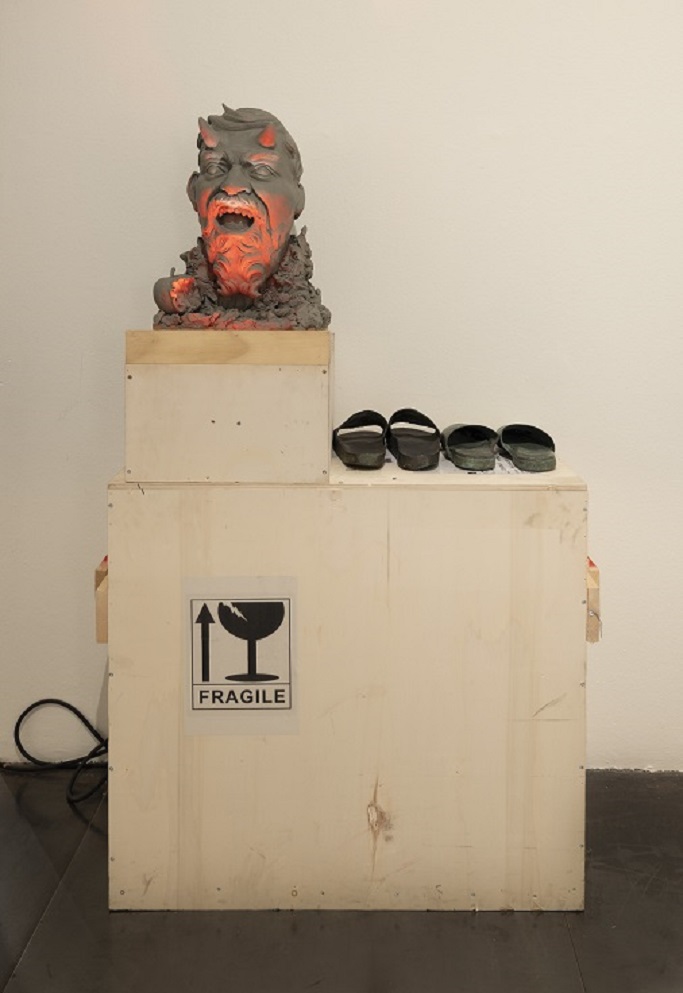 Diventate sculture, le fotografie di Benassi non appaiono semplicemente non-finite, ma precarie. É lo stesso attributo che si potrebbe utilizzare per descrivere la condizione della fotografia oggi, paurosamente in bilico tra realtà e finzione. Così anche l’allestimento di questa mostra rimanda a un passaggio intermedio: quello in cui le opere sono poggiate a terra prima di essere appese a parete e acquisire di conseguenza uno status di superiorità. È il passaggio prima della contemplazione, quando ogni elemento si trova ancora sullo stesso piano.