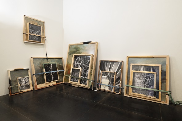 Jacopo Benassi dal 2018 inizia a combinare fotografie indipendenti e distinte tra loro all’interno di cornici doppie, triple e multiple che realizza personalmente utilizzando materiali di recupero. È il rifiuto della singola immagine come icona e della fotografia come pura immagine (immateriale).