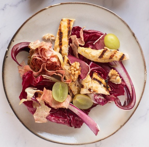 Insalata di pollo, con radicchio, noci e uva è la ricetta a cura di Lidia di Latte&Grappa che la propone per il brand Bauer.