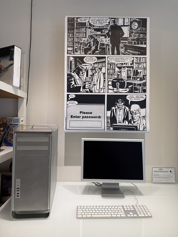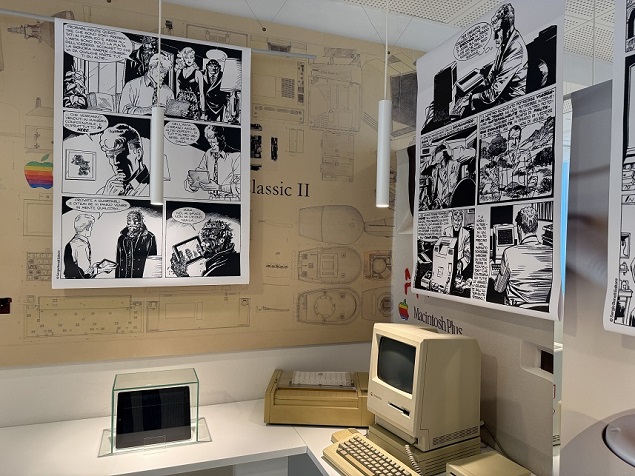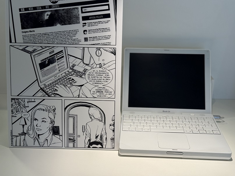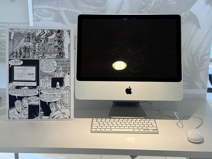 Il percorso espositivo di Apple e Martin Mystère: un amore infinitointreccia fumetto, memoria e tecnologia, e racconta un legame profondo e autentico tra Martin Mystère, Alfredo Castelli e il mondo Apple. In mostra alcune “chicche” come le sei tavole originali dell’albo numero 1 del 1982, e la sua ristampa del 1989, in cui appaiono prima l’Apple II e poi il Macintosh 128k, i primi modelli informatici mai disegnati in un fumetto Bonelli. Il dialogo tra carta e mondo informatico non si ferma con una selezione di oltre 15 modelli Apple iconici affiancati dalle tavole originali in cui sono raffigurati: dai primi portatili come il Powerbook 100 o l’iBook G4, fino al Mac Pro e agli ultimi modelli di iMac e iPad. Infine tre tavole speciali dedicate alla fondazione della Apple, con nomi alterati ma ispirazione diretta alla realtà, che sottolineano la passione di Castelli per l’universo creato dal visionario Steve Jobs.