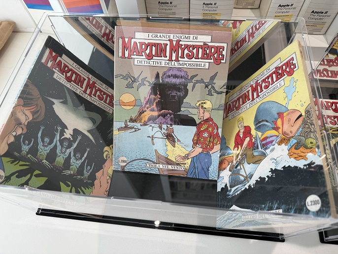 Fino al 28 dicembre 2025 la mostra-evento su Apple e Martin Mystère che intreccia fumetto, memoria e tecnologia. Lungo tutta la sua storia Martin Mystère non ha mai nascosto la sua passione per il mondo della mela morsicata, riflesso di quella che muoveva il suo creatore, tanto che il detective archeologo è stato il primo eroe bonelliano a usare un personal computer. Un primato che appartiene anche al suo autore: Alfredo Castelli fu il primo sceneggiatore della Sergio Bonelli Editore a introdurre un word processor in redazione.