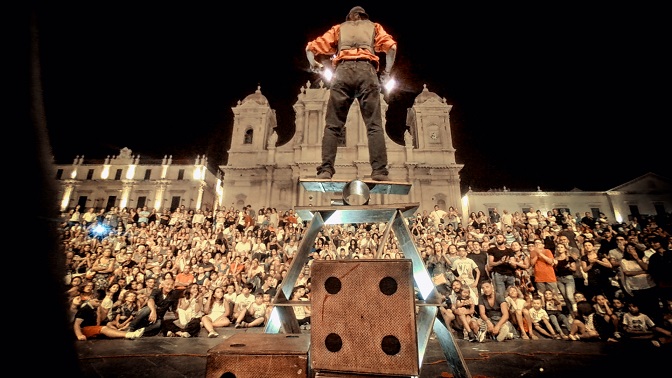 Alle 19:15, sempre nella stessa piazza, è la volta del milanese Stefano Dalessandro, alias Daigoro, con “Voilà”, spettacolo di magia di strada che rompe la quarta parete e rende il pubblico vero protagonista della scena, tra palloncini poetici, ritmo urbano e improvvisazione brillante.