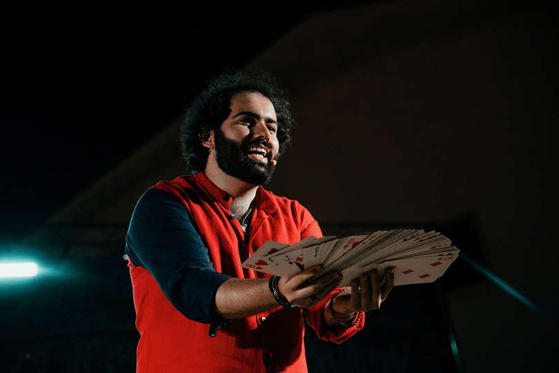 Oltre allo spettacolo, Mattia sarà protagonista di un incontro pubblico sul valore della magia come strumento di relazione, cura e testimonianza. La sua magia è nata per strada e nel tempo ha preso direzioni inattese, portandolo a intrecciare arte e impegno umanitario. All’attività artistica affianca una presenza attiva in vari luoghi colpiti da crisi e conflitti, dove trasforma la magia in strumento di vicinanza e sollievo, capace di riparare, anche solo per un attimo, le ferite invisibili del dolore.
