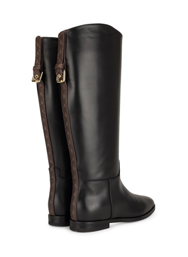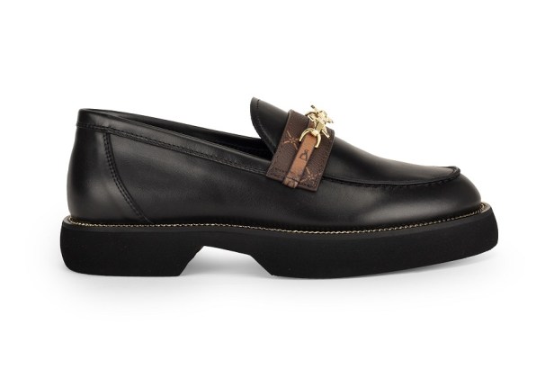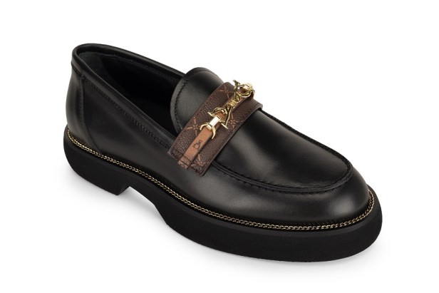 La vera novità, però, è rappresentata dal debutto delle calzature, che completano i look della collezione con coerenza e personalità. Le proposte si inseriscono perfettamente nel panorama delle tendenze FW25/26, che vedono il ritorno a silhouette strutturate, materiali avvolgenti e dettagli statement. Gli stivali cavallerizza si distinguono per i profili logati che donano un’allure decisa ma femminile; i polacchini richiamano uno stile urbano e pratico; le sneakers, pensate per la donna dinamica, uniscono comfort e identità forte, mentre i mocassini — sempre più protagonisti sulle passerelle — vengono rivisitati con fibbia logata e pattern grafici, diventando un vero elemento di stile.