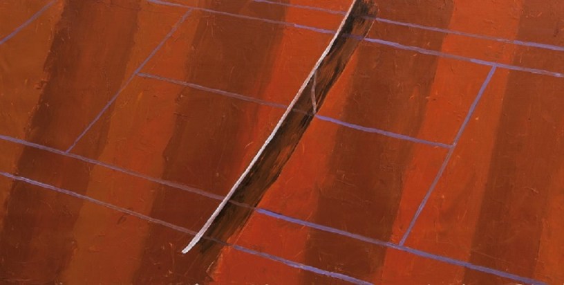 Il pensiero corre a Malevič e al suo quadrato rosso: punto zero, luogo in cui astrazione e figura smettono di opporsi, rimescolano i confini. In Terra Rossa, questa sfida diventa ancora più radicale: qui la pittura non ha più il pretesto del vento o del mare, ma la concretezza della terra. Un campo da tennis abbandonato: linee bianche che affiorano come tracce, quasi a chiedere se sia possibile dipingere con un solo colore e farlo vibrare come magma.