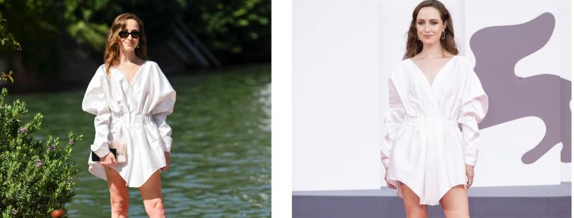 In occasione della 82° edizione del Festival del Cinema di Venezia l’attrice Paola Bettinaglio ha indossato un mini abito in shantung di seta firmato Catalina durante gli arrivi e il red carpet del 29 agosto scorso.