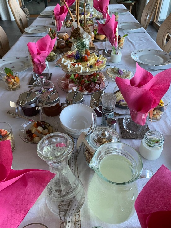 l’Eichernhof a Verano, un maso con allevamento di bestiame che offre ospitalità e che prepara il brunch dal venerdì alla domenica, dalle ore 8.00 alle 13.00, su prenotazione. Per il brunch (32,00 € a persona), proposto in 2 varianti, dolce o salata, vengono utilizzati ottimi prodotti di qualità di produzione propria, come la verdura, la frutta o le erbe, o comunque prodotti selezionati locali e regionali, genuini e sostenibili. Gli ospiti di questo maso possono richiedere questo tipo di colazione tutti i giorni.