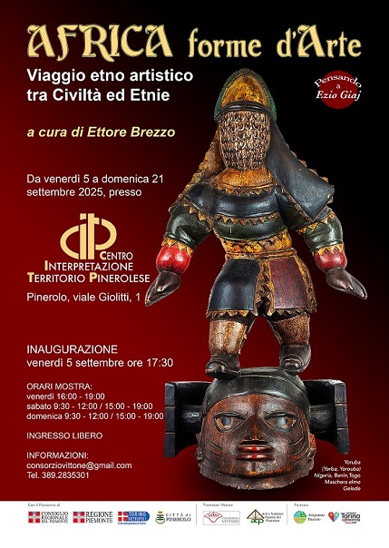 Dal 5 al 21 settembre, la Città di Pinerolo ospiterà la mostra “Africa forme d’Arte” nei locali del CIT-Centro di Interpretazione del Territorio Pinerolese.