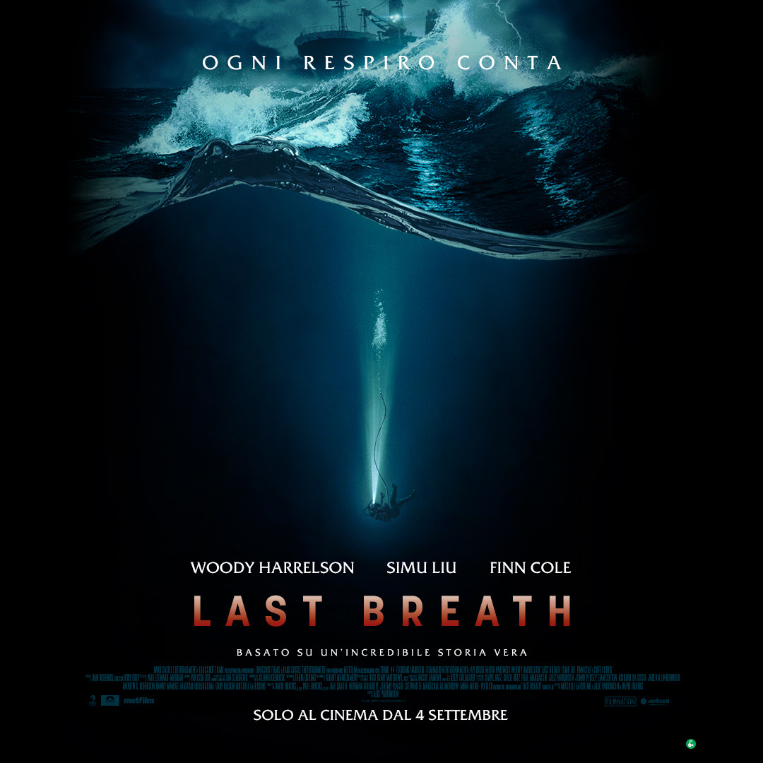 “Last Breath” è un emozionante thriller d’azione che racconta l’incredibile storia vera di Chris Lemons, sommozzatore commerciale, che dopo uno strano incidente rimane intrappolato sul fondo del Mare del Nord. Con solo 10 minuti di ossigeno d’emergenza a disposizione e un’unica speranza di salvataggio a più di mezz’ora di distanza, il film segue l’impossibile lotta per la sopravvivenza di un uomo a 300 piedi sott’acqua, mentre in superficie i suoi colleghi lottano contro una terribile tempesta, nel disperato tentativo di riportarlo indietro vivo.